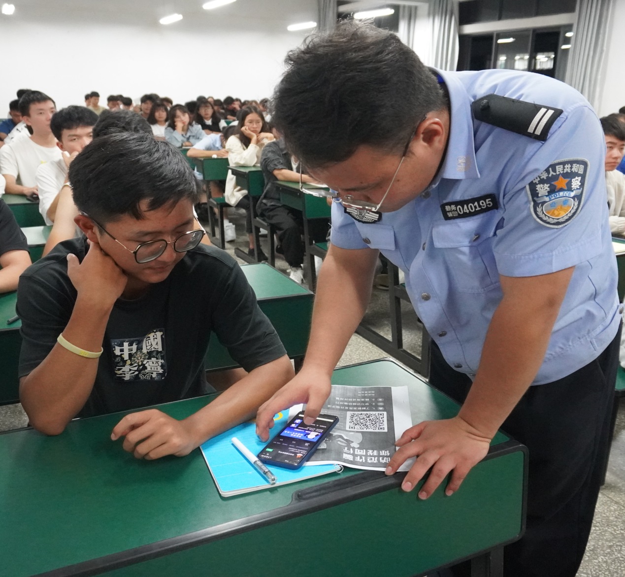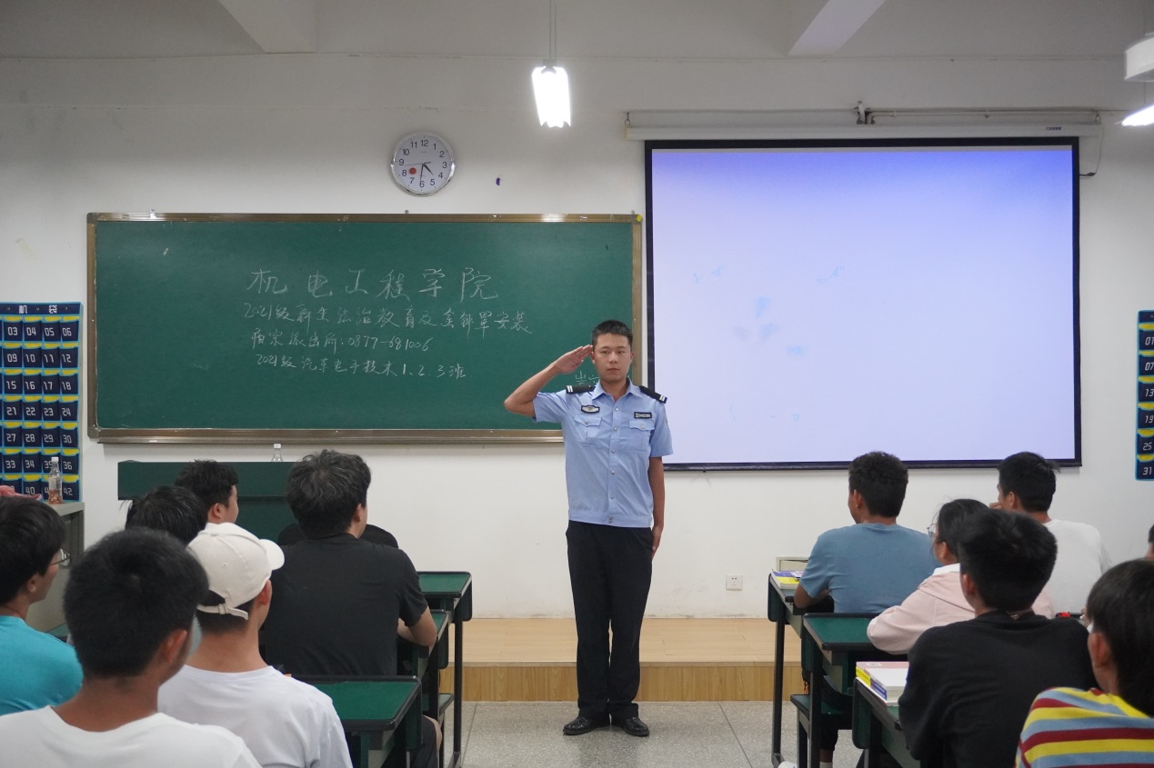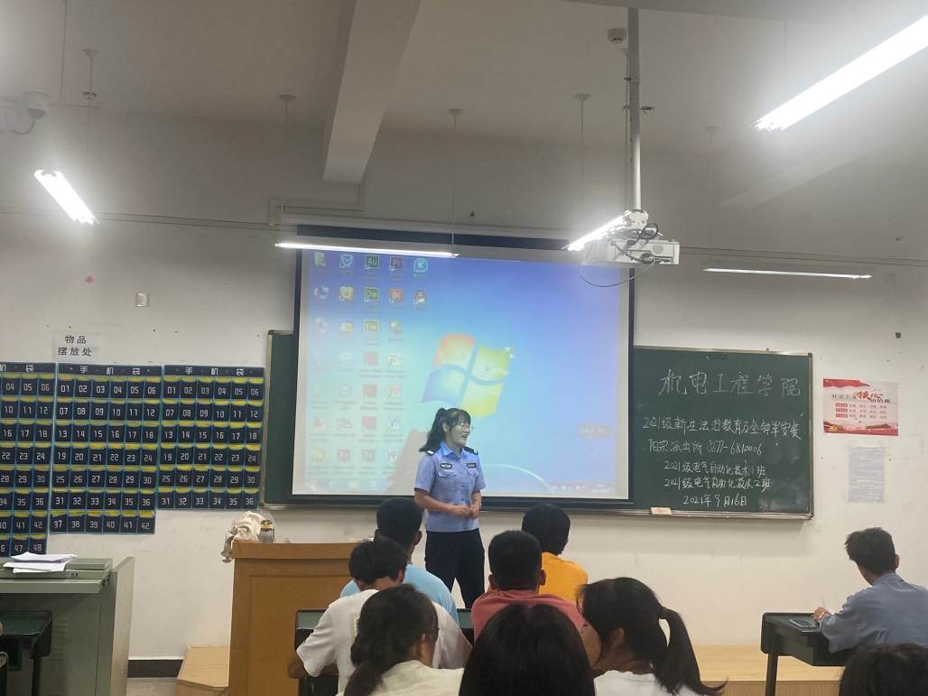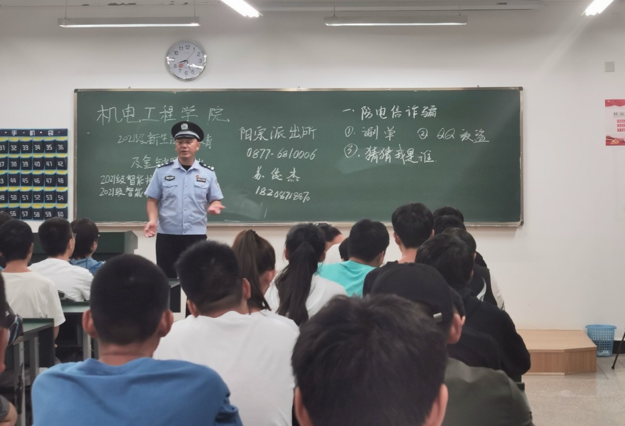 为做牢、做实校园安全工作,提高机电学子的安全防范意识,真正为学生办实事,澳门网投十大信誉平台在学校保卫处的带领下,于9161850在崇实楼、笃行楼教室针对2021级全体新生,开展了法制教育及“金钟罩”的安装指导。本次宣传教育讲座有幸邀请到阳宗派出所的10余名工作民警进行现场宣讲,澳门网投十大信誉平台党总支书记王春莲、副书记陈伟及全体辅导员老师共同组织并配合宣传。