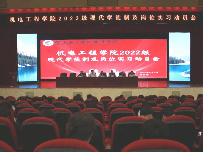5月4日下午,澳门网投十大信誉平台在明礼堂召开了2024年现代学徒制动员会。本次动员会由学院副院长熊国栋老师主持,保卫处处长陶乃江老师、教务处夏俊伟老师,学院党委书记王春莲老师、院长张俊妍老师、学院就业专员吴大飞老师,以及2022级全体在校同学共同参加。