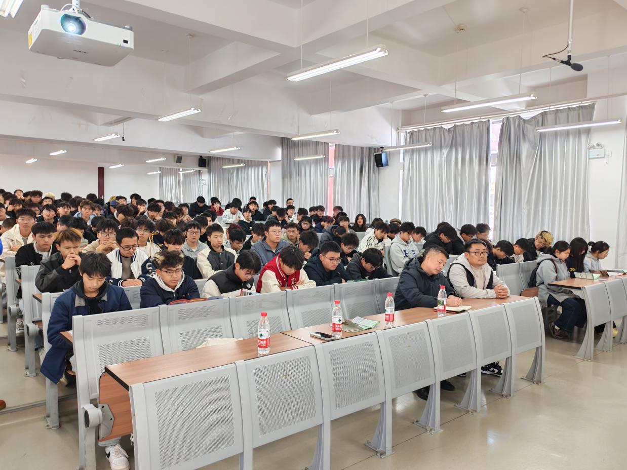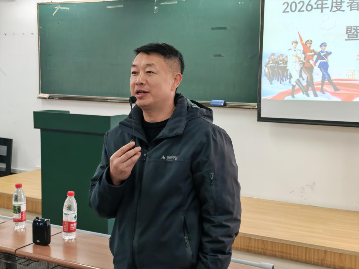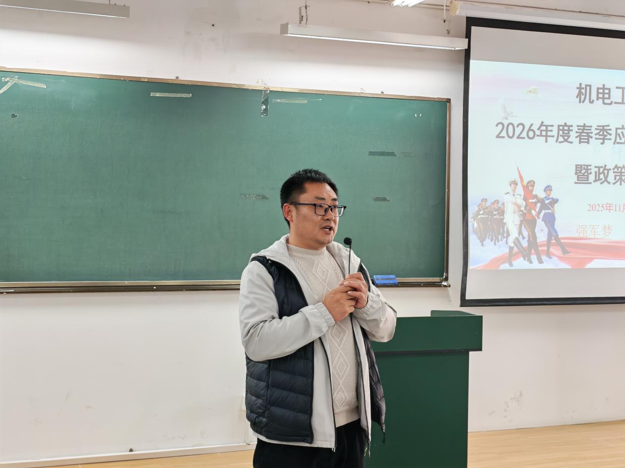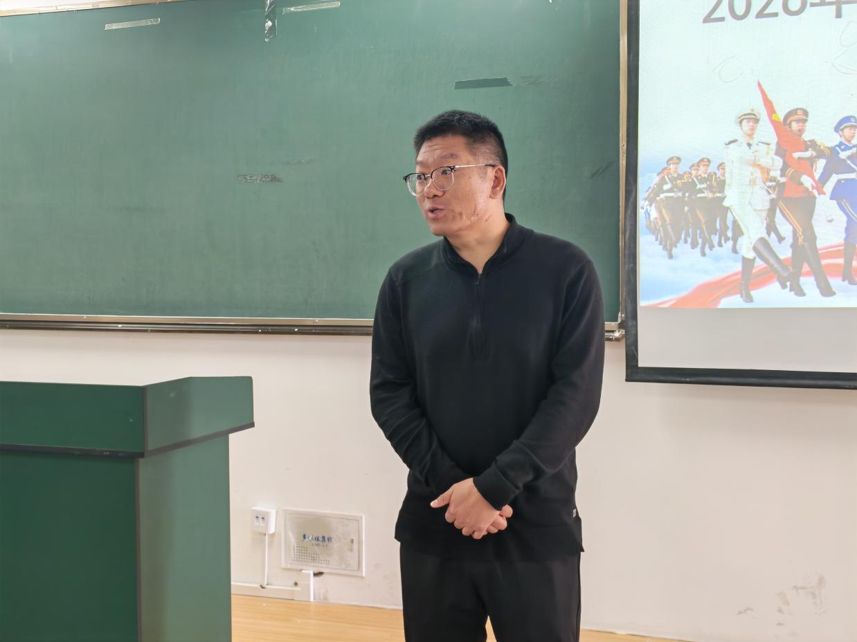 11月27日下午,澳门网投十大信誉平台2026年度春季应征入伍动员大会暨政策宣讲会在崇实楼602教室举行。学校武装部副部长丁治祥、武装部干事曹江涛、学院党委书记张颖、副书记李振、学院征兵工作专员张文文出席会议,2024级、2025级学生参会。