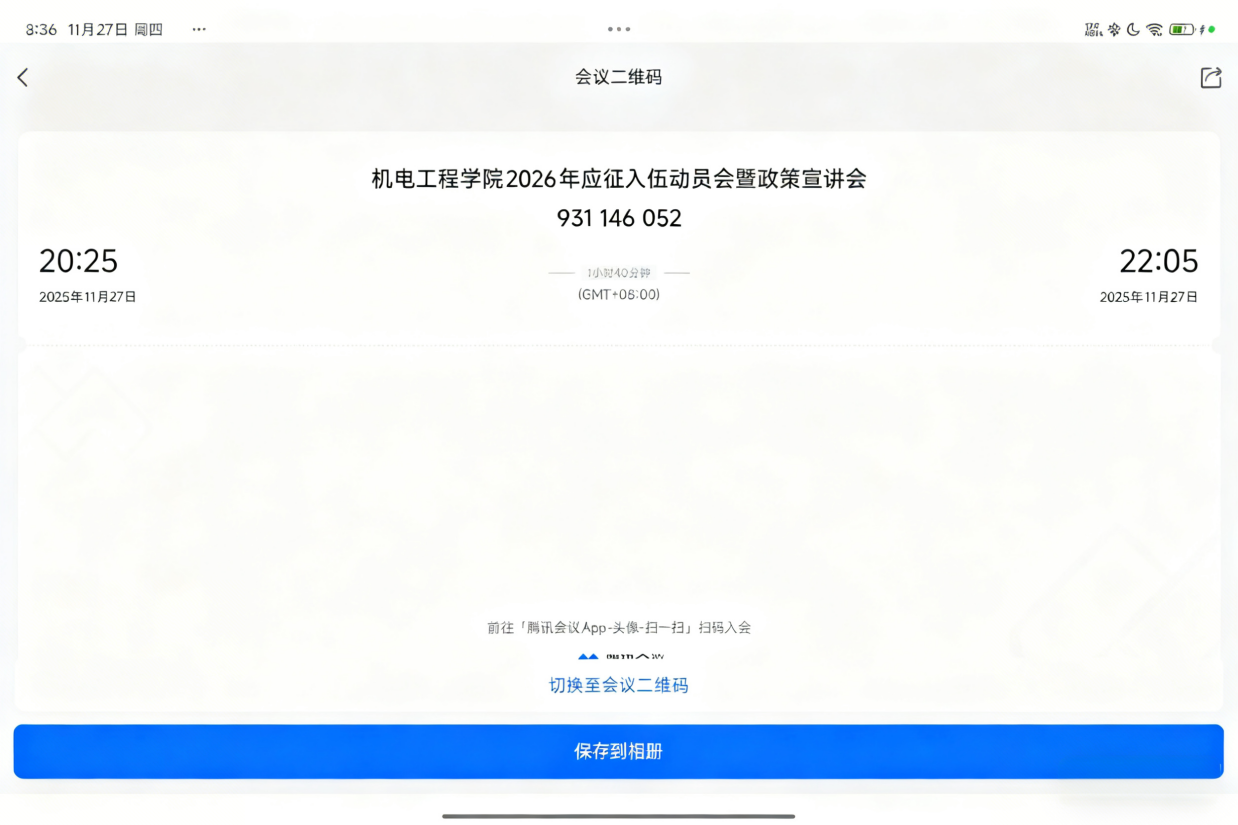 针对2023级学生在校外实习的情况,张颖书记于11月27日晚通过腾讯会议,专门为校外实习生召开了一场应征入伍政策动员宣讲会。