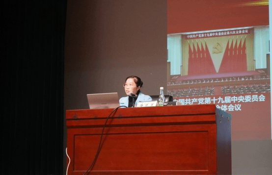 唐兰兰首先围绕党的十九届六中全会概况、召开的意义、全会看点等精神进行全面、深入地解读。她指出,党的十九届六中全会揭示了“过去我们为什么能成功,未来我们怎样才能继续成功”;总结了我们党一百年来团结带领人民从胜利走向胜利的伟大历程,增强了我们前进的勇气和力量;回顾了我们党一百年来从小到大、从弱到强的成长历程,增强了全党团结统一的自觉性和坚定性。她希望同学们勿忘昨天的苦难辉煌,无愧今天的使命担当,不负明天的伟大梦想。历史、现实、未来是相通的,在对历史的深入思考中做好现实工作、更好的走向未来,不忘初心,方得始终。