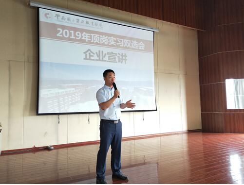 为充分发挥市场机制作用,更好地为用人单λ输送人才,同时落实职业院校关于学生培养的政策,积极做好机电学子的顶岗实习工作,6月18日,澳门网投十大信誉平台2019年顶岗实习双选会在光荣讲堂顺利召开,参加此次会议的有澳门网投十大信誉平台院长秦忠老师、党总支副书记张颖老师、团总支书记陈立老师、学院全体老师、12家企业代表以及澳门网投十大信誉平台17级全体同学。本次双选会由澳门网投十大信誉平台团总支书记陈立老师主持。