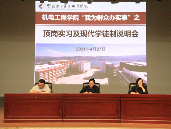 为强化教师的服务意识,聚焦“我为群众办实事”的主题实践活动,帮助同学们树立正确的就业观、择业观,引导2019级同学做好顶岗实习前的各项准备工作,2021年4月27日17:30,澳门网投十大信誉平台在明礼堂举行顶岗实习及现代学徒制说明会。本次活动由澳门网投十大信誉平台团总支书记陈立老师主持。参与本次会议的有澳门网投十大信誉平台党总支书记王春莲老师、澳门网投十大信誉平台主持工作副院长张俊妍老师、澳门网投十大信誉平台团总支书记陈立老师、2019级全体同学和辅导员共同参与了本次会议。