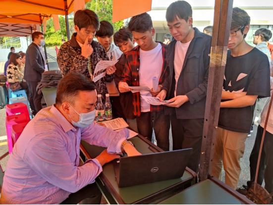 早上9:00,23家企业分别在明尚楼A区相应展位进行了简历收集和面试交流工作。学院党总支书记王春莲、院长张俊妍、副书记陈伟一同来到现场,与部分用人单位和学院前来应聘的学生进行了面对面交流。现场了解了学生的求职意向与投递简历的情况,并与企业人事就用人单位的基本概况、岗位要求、工资待遇、工作环境等作了具体沟通。