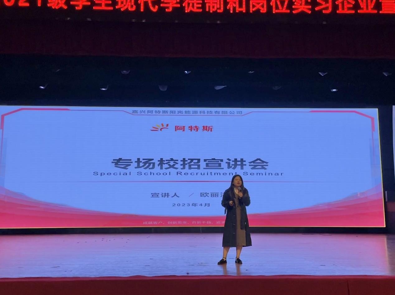 5月17日至18日,澳门网投十大信誉平台分别在崇实楼602和明礼堂召开了2023年第三次企业宣讲会。本次企业宣讲会邀请了麒盛科技股份有限公司、浙江台华新材料股份有限公司、嘉兴阿特斯阳光能源科技有限公司、嘉兴隆基乐叶光伏科技有限公司4家企业到校进行宣讲,学院相关老师和2021级全体同学共同参与此次宣讲会。