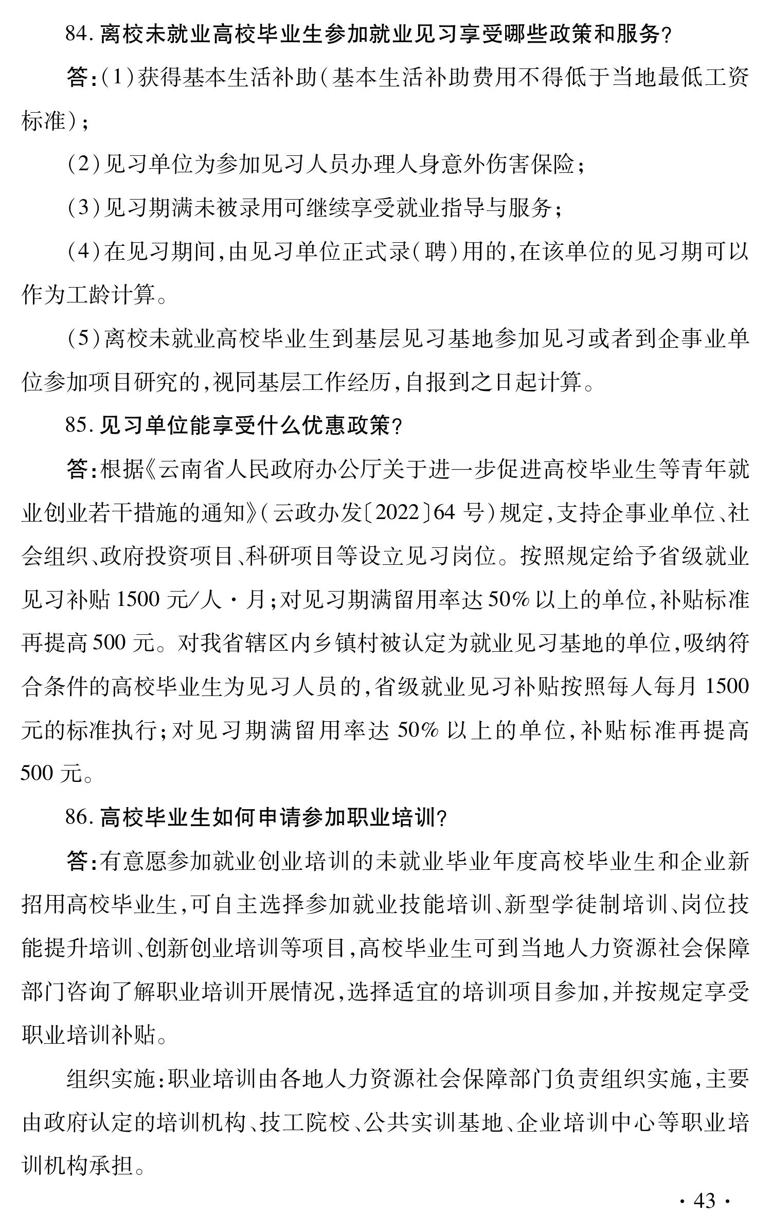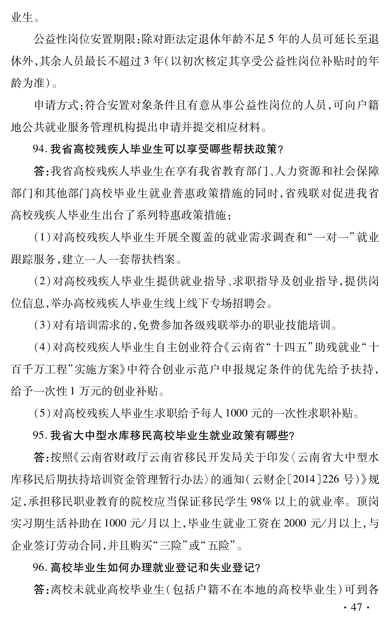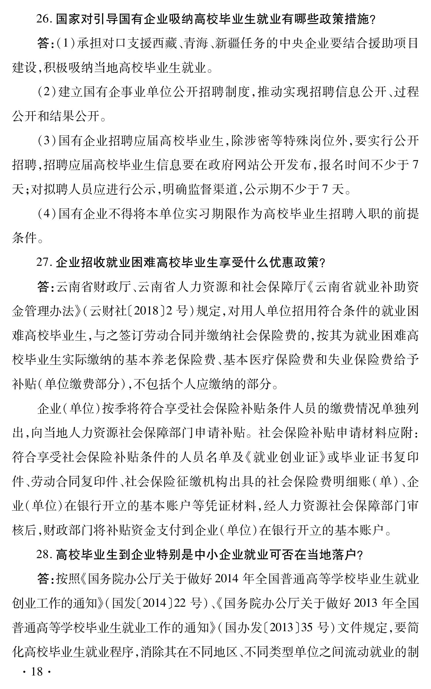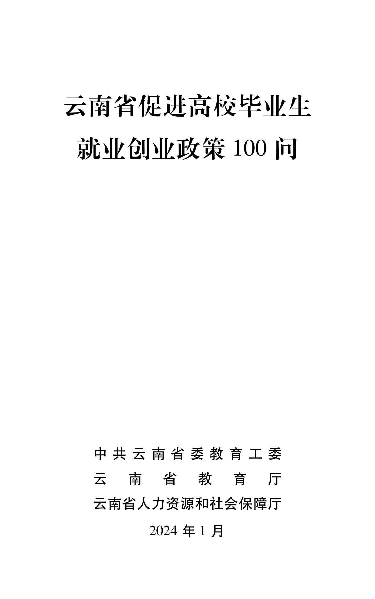 云南省促进高校毕业生就业创业政策 100问