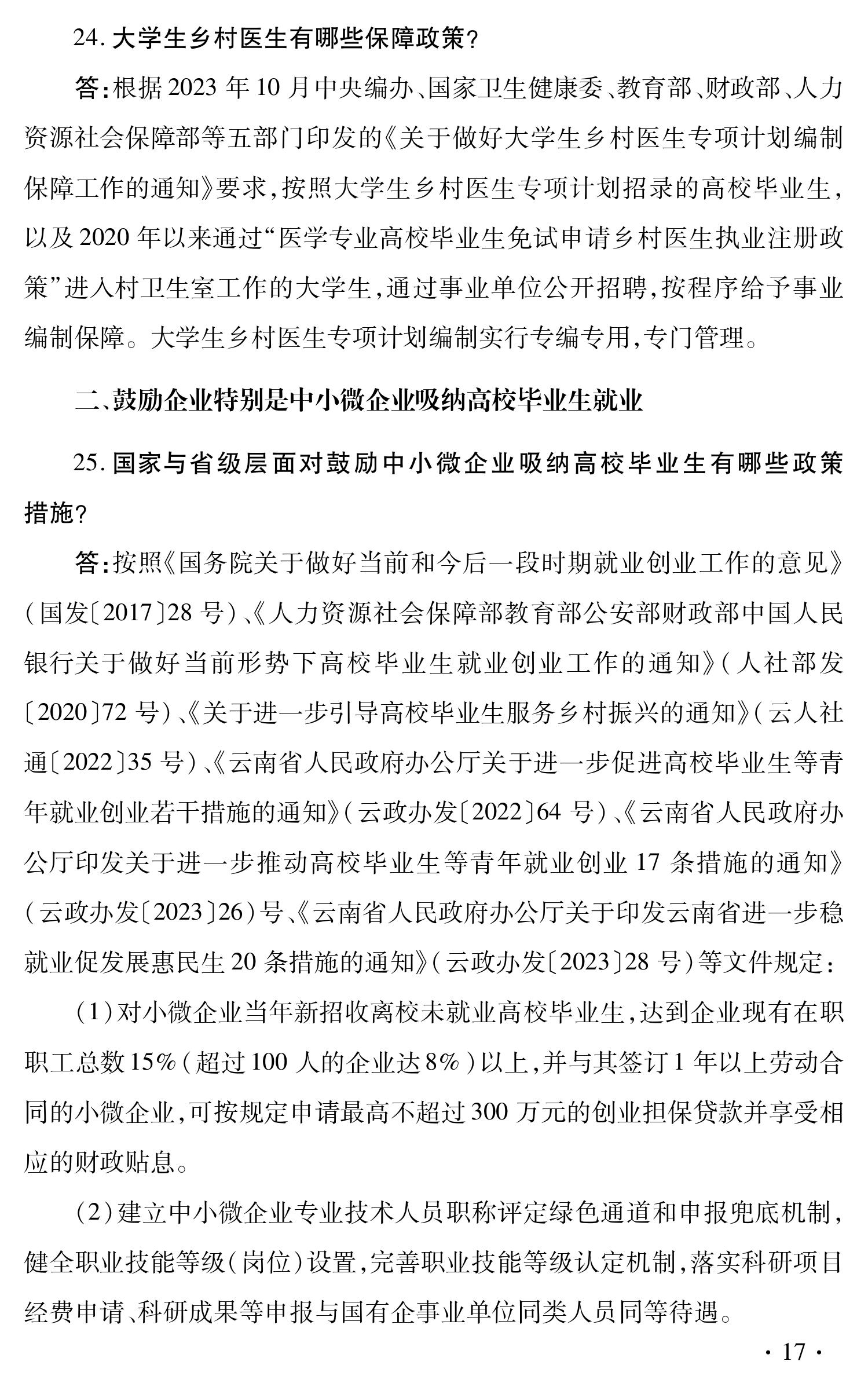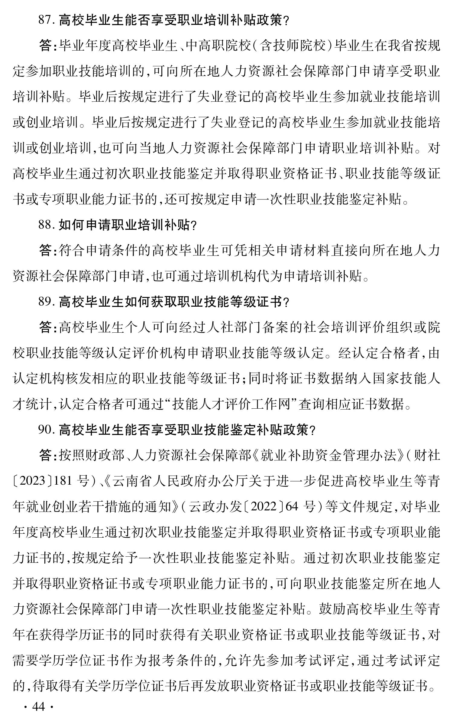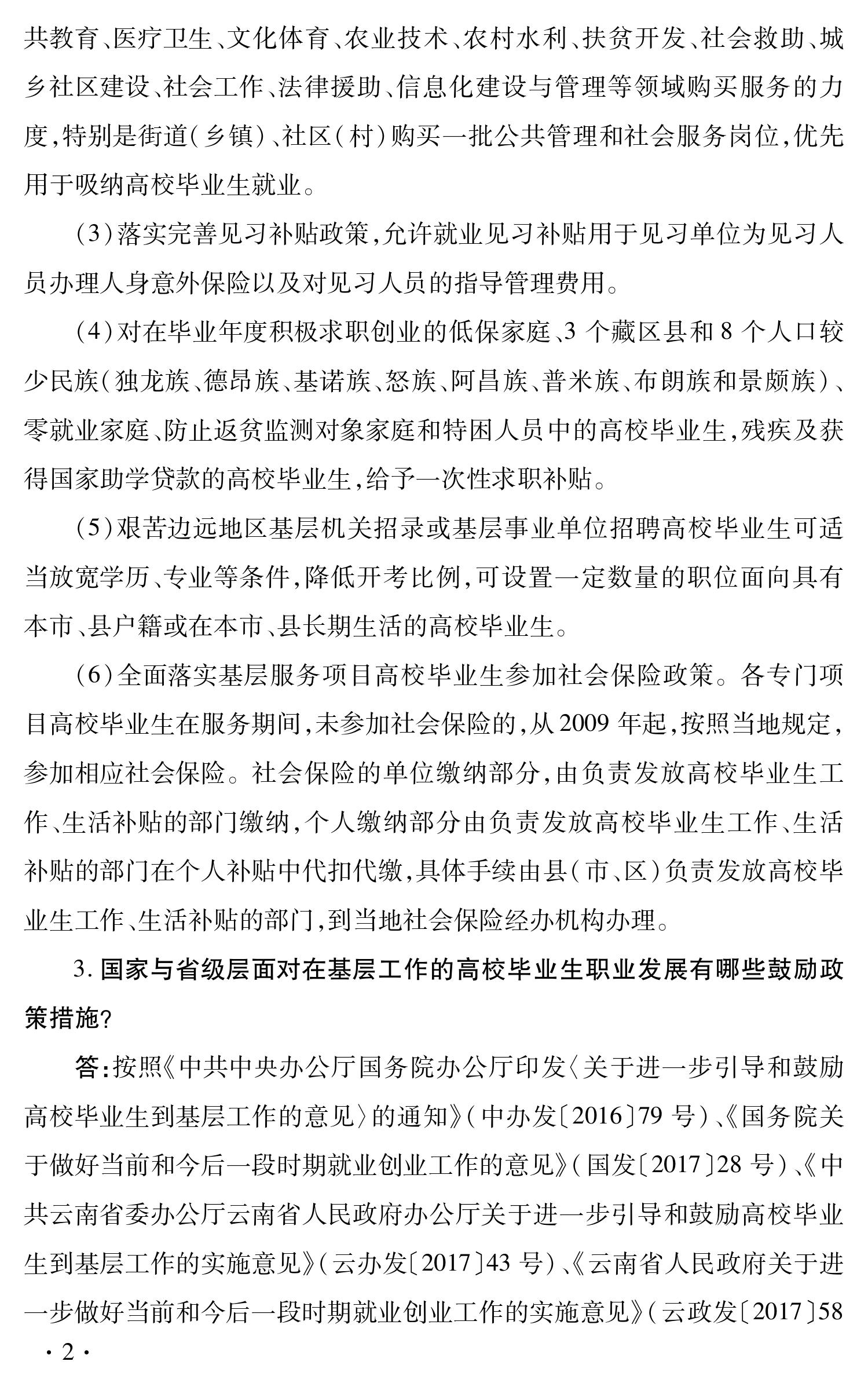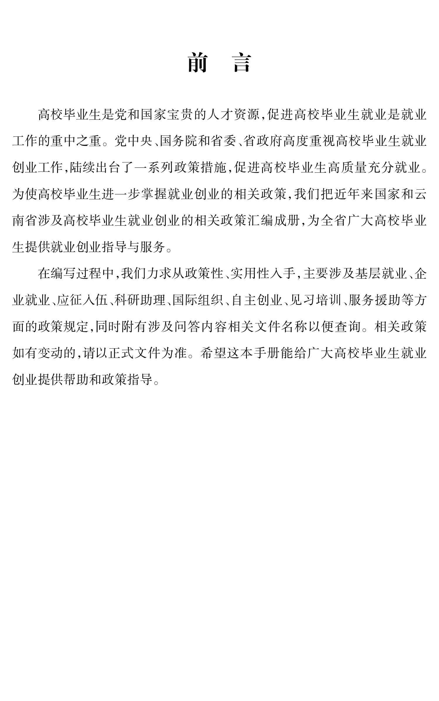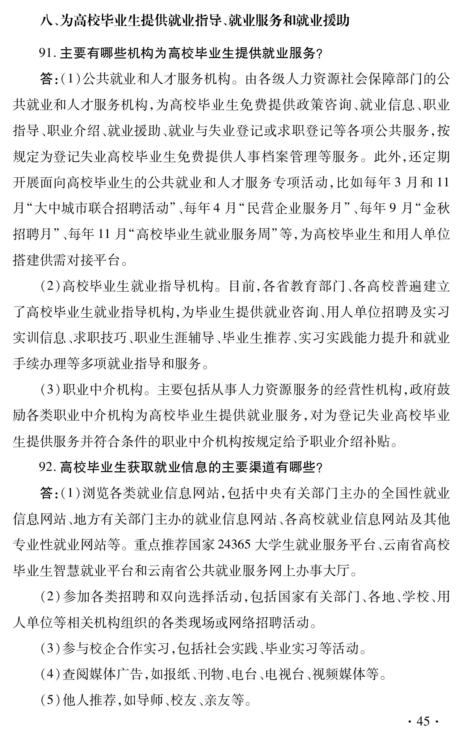 云南省促进高校毕业生就业创业政策 100问