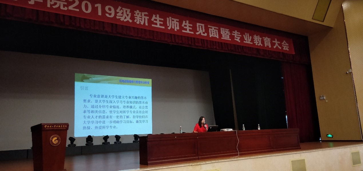 俗话说:“良好的开端是成功的一半”,为了帮助2019级大一新生尽快适应大学生活,为大学生活开创一个良好的开端,同时也为增进师生间相互了解,方便今后的学习生活,澳门网投十大信誉平台于9月16日下午3点在明礼堂举办了2019级新生师生见面会暨专业教育大会。参加本次会议的有澳门网投十大信誉平台院长秦忠,党总支副书记张颖,各教研室主任及全体教职工。