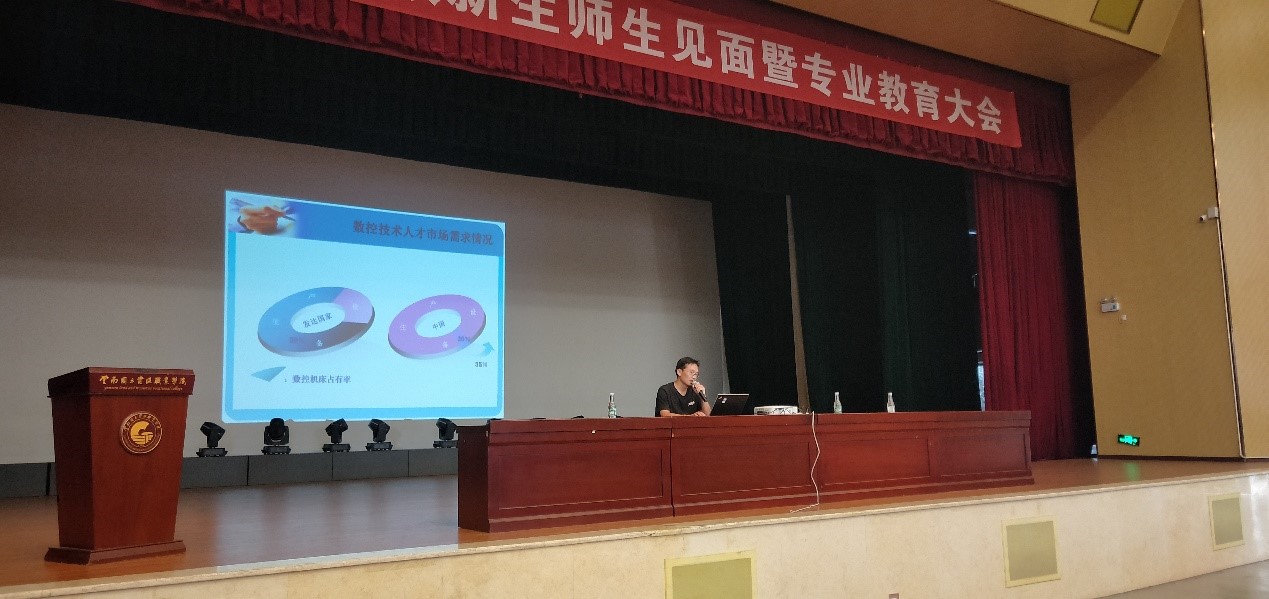 学院院长秦忠老师致辞,秦忠老师就澳门网投十大信誉平台概况、师资力量、学院荣誉、专业设置、实习就业、导师及校企合作等几个方面进行了详细介绍。随后,各个教研室主任进行专业教育,对教研室概况、师资及专业发展前景等进行了详细介绍,让同学们更清楚的了解所学专业及未来发展。