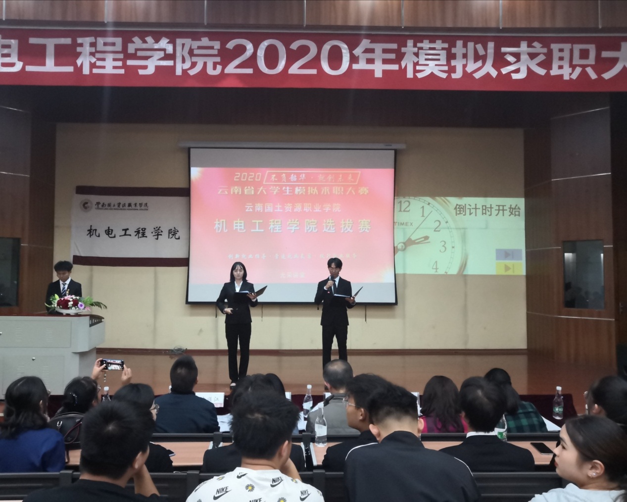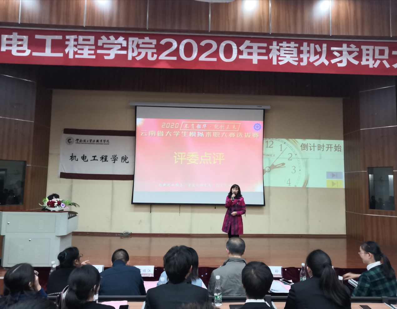 为增强学生的就业创业能力,提高学生就业创业热情,加大就业服务工作力度,创新就业服务指导模式。同时引导学生了解用人单位需求、合理进行职业规划,澳门网投十大信誉平台于2020年10月27日晚6:30在光荣讲堂举办2020年大学生模拟求职大赛。出席本次大赛的有云南建投第十一建设有限公司人力资源部部长沈顺江老师、昆明南疆制药有限公司人力资源部部长魏玲老师、昆明南疆制药有限公司人力资源部招聘主管田丽华老师、澳门网投十大信誉平台就业与校企合作处处长董云老师、澳门网投十大信誉平台党总支书记王春莲老师、澳门网投十大信誉平台副院长张俊妍老师、建设工程学院团总支书记张宁老师、澳门网投十大信誉平台团总支书记陈立老师,澳门网投十大信誉平台辅导员谢亚男老师及19级、20级学生代表。