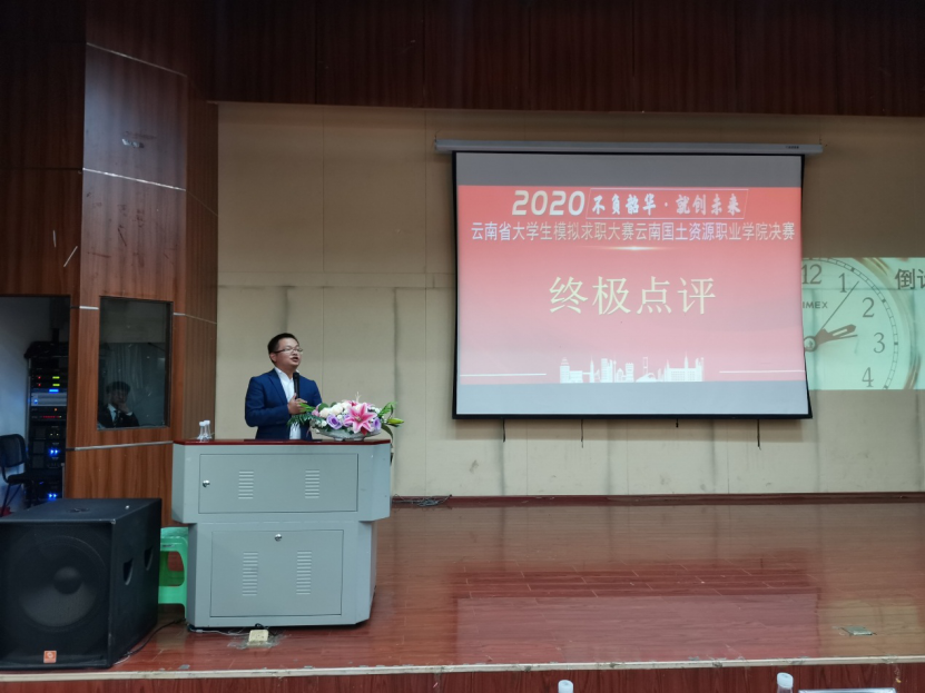 为全力做好我校大学生就业指导工作,加大就业服务工作力度,创新就业指导模式,引导大学生了解用人单位需求,合理进行职业规划,并选拔优秀代表参加省级比赛,澳门网投十大信誉平台2020年大学生模拟求职大赛(企招组)决赛于2020年11月12日18:30在光荣讲堂进行,本次大赛由澳门网投十大信誉平台承办。出席本次大赛的嘉宾老师有澳门网投十大信誉平台副院长董钧祥老师、澳门网投十大信誉平台就业与校企合作处处长董云老师、澳门网投十大信誉平台党总支书记王春莲老师、澳门网投十大信誉平台就业与校企合作处副处长钱敏老师,担任本次大赛的评委嘉宾有昆明市阳光心霖儿童公社人力资源部总监刘帅老师、昆百大集团人力资源总经理杨卫东老师、昆明怡泰祥有限珠宝公司人力资源总监陈敏老师、昆明合景房地产经纪有限公司人力资源总监任欣茹老师、云南鸿翔一心堂药业(集团)股份有限公司人力资源中心招聘管理部经理杜晓渝老师、麒盛科技股份有限公司人事总监李伟峰老师。