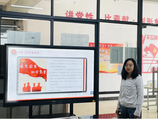 会议伊始,辅导员工作室成员谢亚男结合自身的资助工作经验,主要从资助工作的重要性、精准掌握资助政策、全面落实资助育人三个方面进行了讲解。她指出,教育是阻断贫困代际传递的根本之策,让贫困家庭子女都能接受公平而有质量的教育,是夯实脱贫攻坚根基之所在。学生资助管理工作,是落实学生资助政策、促进教育公平的基础性工作。她认为做好资助工作要从以下几个方面努力:一是要熟知“奖、贷、助、勤、补、减”的具体政策和评定流程,规范资助管理,全过程跟踪。二是充分利用校内勤工助学岗位、各类竞赛、现代学徒制、顶岗实习等,搭建助学实践平台、思想教育平台,实现全方位育人。三是要积极选树各类学生典型、优秀老教师、知名校友等,发挥榜样的力量,实现全员参与。