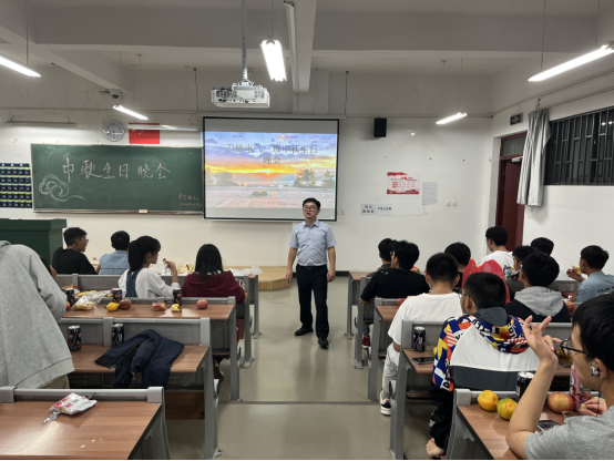 皎皎明月意,浓浓中秋情。值此中秋节、教师节来临之际,为丰富在校过节同学的校园生活,缓解在校过节同学的思乡之情,让同学们在校也能感受到"家"的温暖,澳门网投十大信誉平台2021级、2022级部分班级分别于9月9日、10日在崇实楼、笃行楼和明尚楼举办中秋晚会。学校党委副书记李昆峰老师、学院党总支书记王春莲老师、党总支副书记陈伟老师、团总支书记陈立老师以及2021级、2022级各班辅导员、班主任应邀出席。