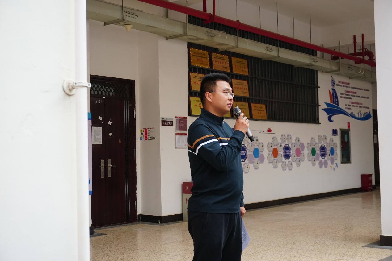 同学们有序疏散到了空旷的停车场,然后整齐集合,王亚文老师为对此次消防安全疏散应急演练做总结,并讲解如何提高消防安全以及应对火灾时的措施和心态。大家一起喊出消防安全的口号:“火源管理,严密控制,校园安全,人人有责。”