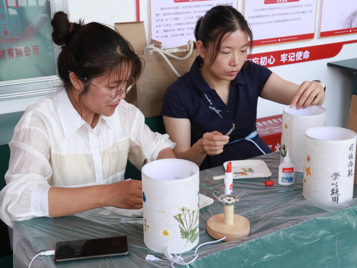 本次活动在浪漫又温暖的气氛烘托下,迎来了一场独具匠心的古风压花台灯制作之旅,不仅为身心繁忙的老师们点亮了疗愈之光,驱散心中的阴霾,还让独具特色的花艺台灯点亮了心中美好和希望。
