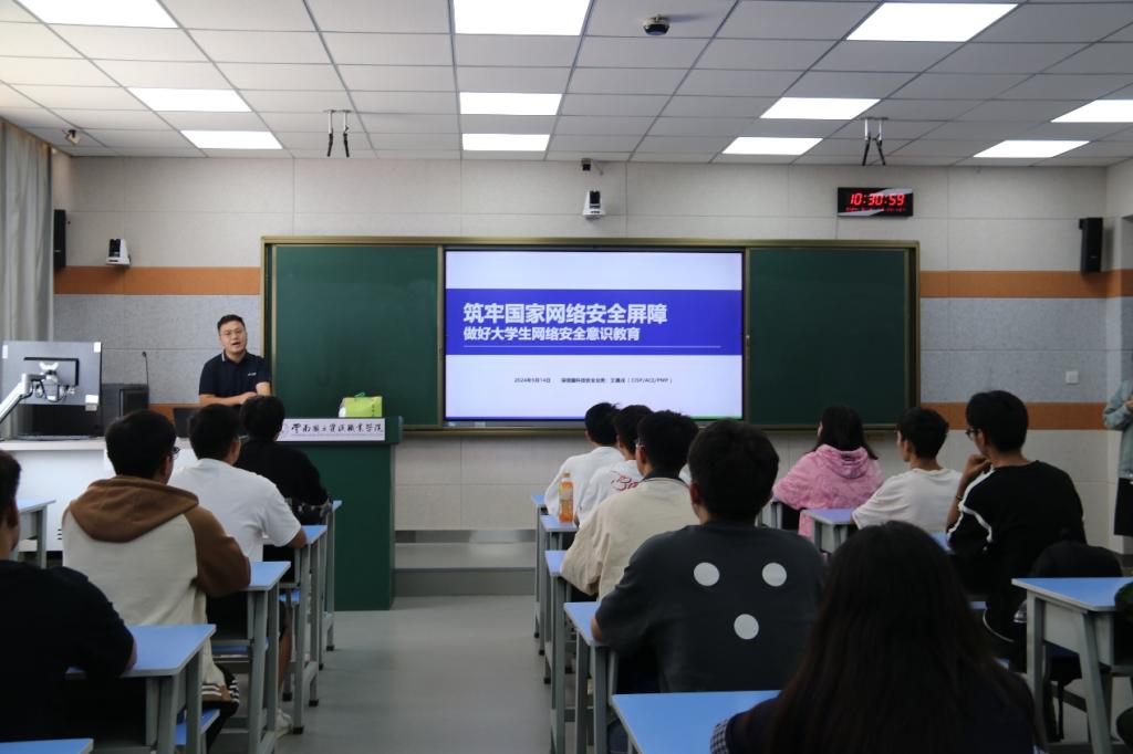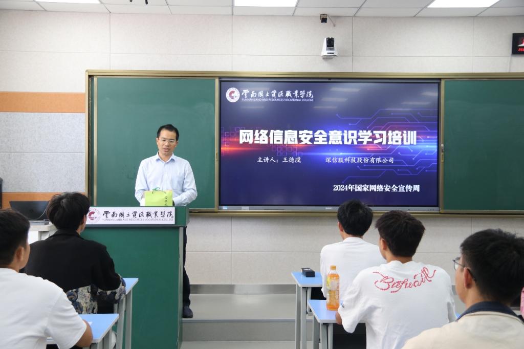 为深入开展网络安全知识技能宣传普及,提升机电学子网络安全意识和安全防护技能,有效预防各类诈骗犯罪,9月14日上午,澳门网投十大信誉平台邀请深信服科技公司云南办事处安全业务负责人王德戌老师,在崇实楼303开展“筑牢国家网络安全屏障,做好大学生网络安全意识教育”专题讲座。
