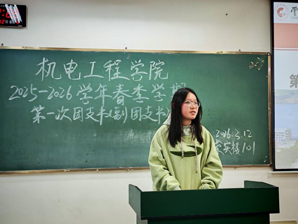 王亚文老师部署新学期重点工作,要求团干部认真开展团日活动,杜绝团日活动归档材料不规范现象,调动学生参与第二课堂积极性,做好团支部的日常管理工作,提升服务意识和工作主动性。