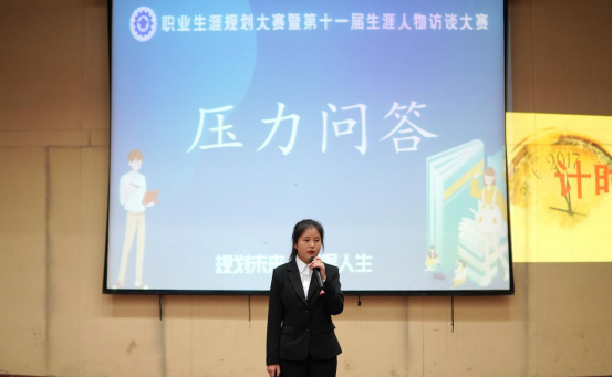 比赛正式开始,12名参赛选手依次对职业规划的自我认知、职业认知、职业规划、成长路径等进行介绍。评委老师围绕选手的职业目标、职业价值观和职业选择等进行提问。各参赛选手针对提问应答如流,引起现场阵阵掌声。