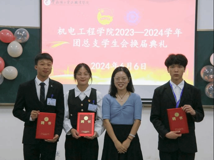 6月6日,澳门网投十大信誉平台团总支、学生会在明尚楼A 216举办了2024年团总支、学生会换届典礼。学院党总支书记王春莲、团总支负责人马玲、专职辅导员全伟东以及全体新老学生干部共同参与了此次典礼。