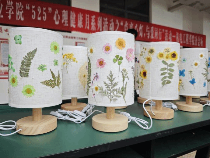 本次活动在浪漫又温暖的气氛烘托下,迎来了一场独具匠心的古风压花台灯制作之旅,不仅为身心繁忙的老师们点亮了疗愈之光,驱散心中的阴霾,还让独具特色的花艺台灯点亮了心中美好和希望。