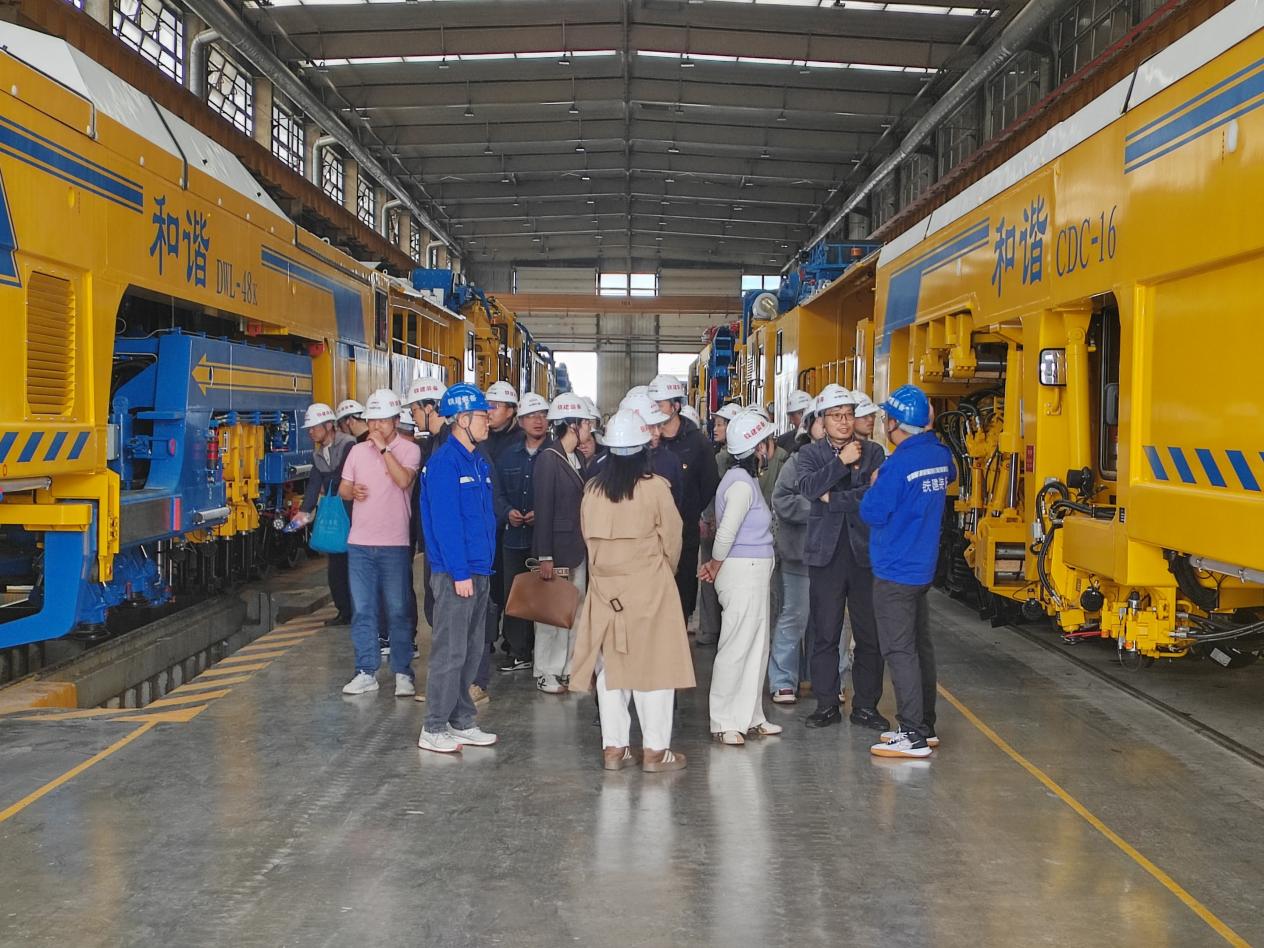 学院教师在企业讲解员带领下,深入生产车间,实地观摩大型铁路养护机械的制造流程与智能化装配线,详细了解企业现代化生产组织模式与质量管控体系。现代化的生产场景与精益求精的工艺细节,令教师们对“大国重器”背后的制造实力有了直观认识。