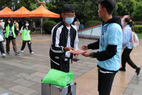 哗啦啦的行李箱滚动声响起,学院迎来了第一批新生,迎新工作正式开始。热情的迎新志愿者团队秉承服务第一的宗旨,兵分两路,分别在观山楼检录点与国土广场报到点帮助新生进行检录、添加班级群、关注学院微信公众号、分配宿舍,耐心解答新生的问题,他们用饱满的热情,亲切的笑容,周到的服务迎接着每一位新生,大家分工明确,认真负责,给新同学们留下了美好的“国土”初印象。