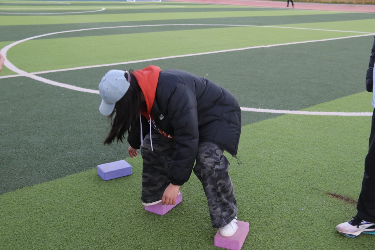 三块砖,一双脚,稳为先。脚踩“石头”步步挪,沉着谨慎,顺利闯过难关!