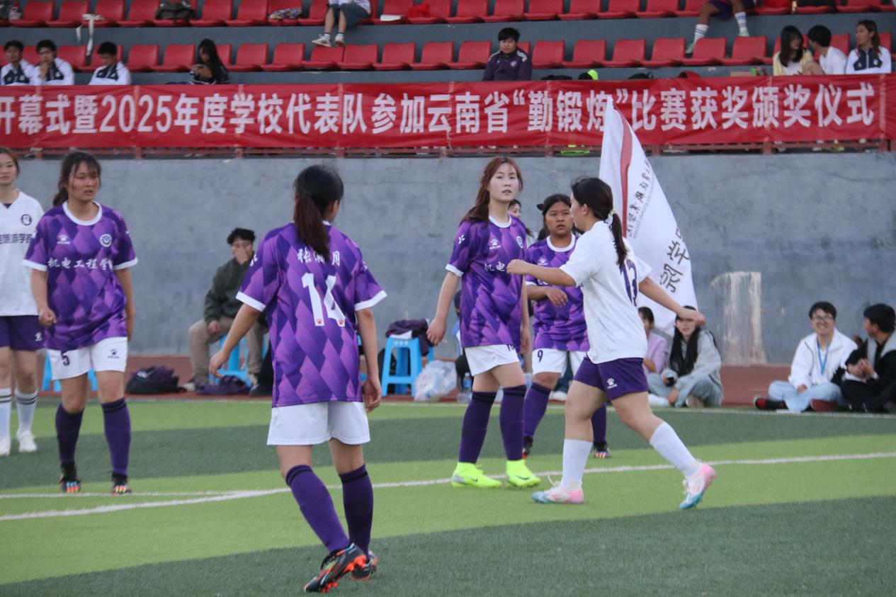 赛场另一边,我院女子足球队同样展现不俗实力。姑娘们动作利落果断,进攻敢于突破,防守寸步不让,用全力以赴的表现诠释“热爱无关性别”,成为绿茵场上一道靓丽风景。场下,拉拉队热情高涨,加油声此起彼伏,为场上球员持续注入能量。