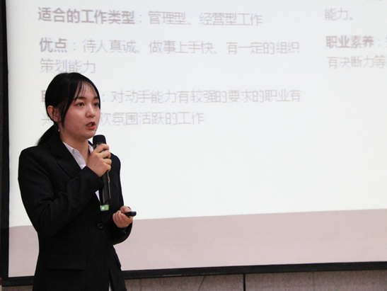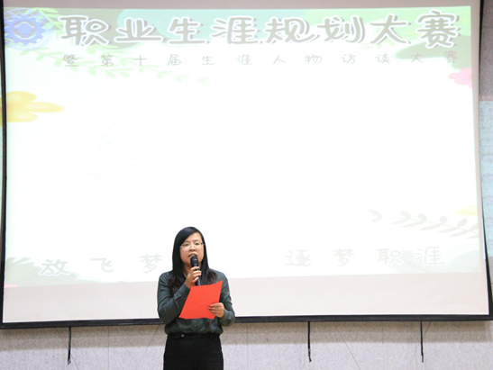 接着,主持人介绍了本次比赛的规则和评分标准。本次比赛共有12名选手,选手首先通过PPT讲述《生涯人物访谈报告》的内容并分享访谈后的心得,随后评委老师对选手的《职业生涯规划书》《职业世界说明书》进行点评,并提出有关问题,选手们对各位评委所提的问题进行了完美的解答和阐述。