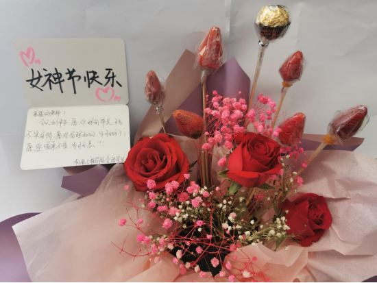 为感谢全体女教职工的辛勤工作,学院学生会为学院全体女教职工送上了亲手制作的花篮,在这里,祝学院的“女神”们:眼角带笑,月光不染眉梢;眉眼如初,岁月如故;温柔不变,岁月无恙!