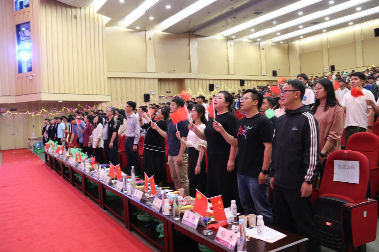 出席本次晚会的领导嘉宾有校党委副书记李昆峰、校党委宣传部部长茹华所、马克思主义学院院长张延星、审计处处长胡建华、珠宝旅游学院党总支书记张颖、素质教育学院党总支书记李霞、资源环境学院党总支副书记徐永全、校团委王姚尧、澳门网投十大信誉平台党总支书记王春莲、澳门网投十大信誉平台院长张俊妍、澳门网投十大信誉平台副院长陈伟,担任本次文艺汇演评委有校团委副书记罗之鹏、资源环境学院团总支书记熊欢、建设工程学院团总支书记张宁、国土空间信息学院团总支负责人马佳、珠宝旅游学院团总支负责人孙杰。兄弟学院师生以及我院2022级全体同学共计八百余人欢聚一堂,共同观看演出,尽享视听盛宴。