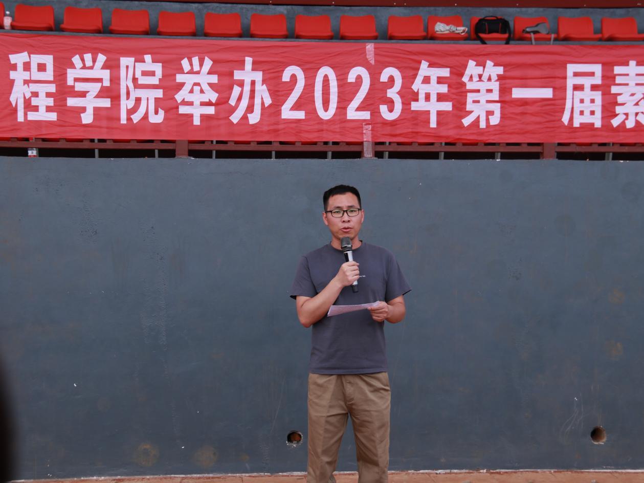 开幕式上,主持人简单介绍活动背景后,全体师生奏唱国歌。随后,学院副院长陈伟老师为本次开幕式致辞,他指出,本次活动旨在锻炼学生的体魄,丰富学生的业余生活,希望各位同学能够遵守比赛规则,遵循“友谊第一、比赛第二”的原则,用青春、活力、激情、汗水去展现自己的特长,积极进取,团结协作,努力取得好成绩。