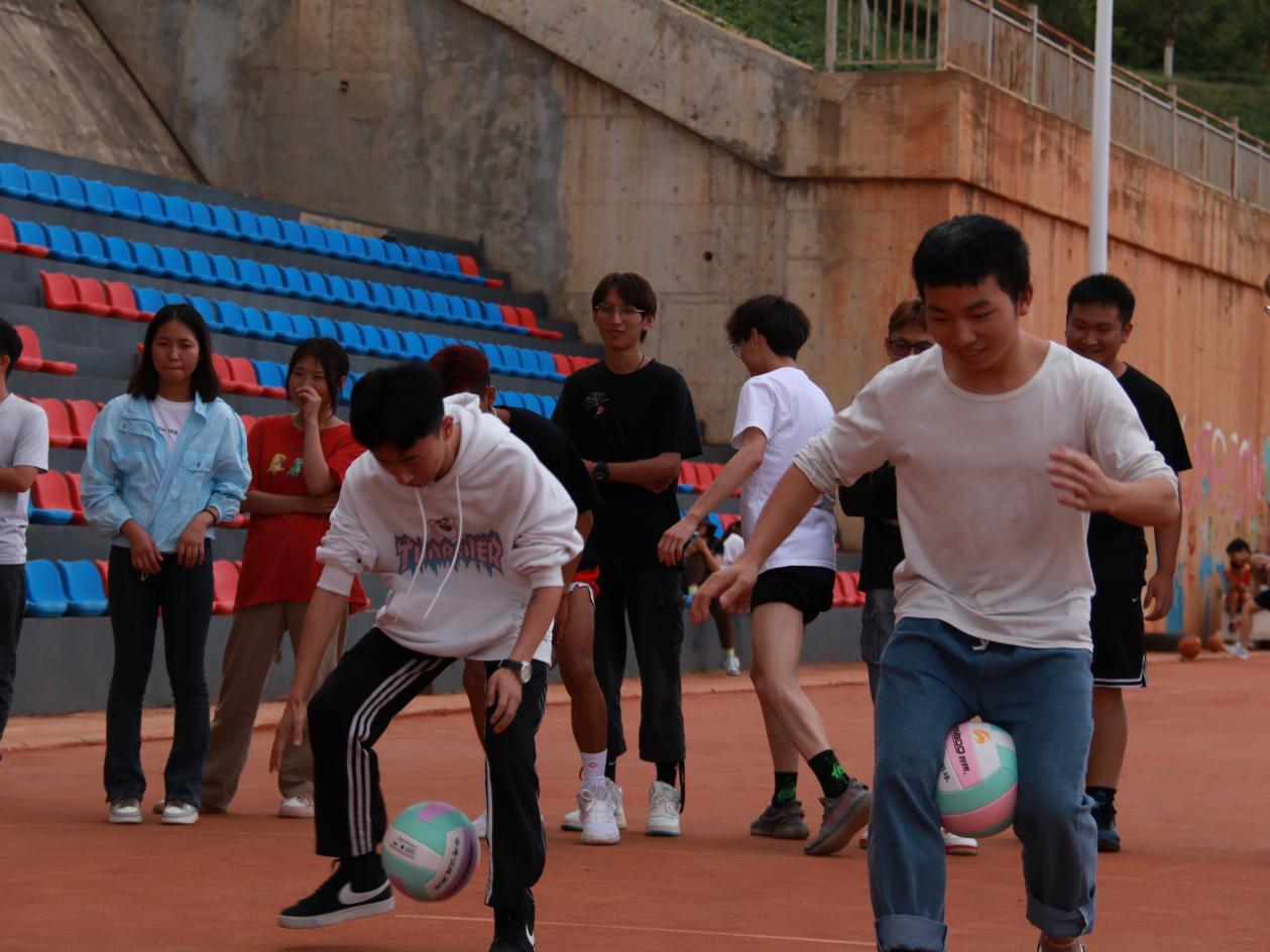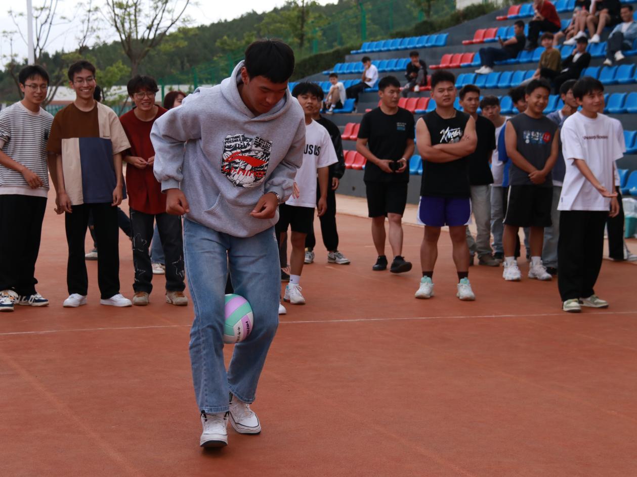 开幕式结束后,本届素质拓展活动节的第一个比赛项目“双腿夹球接力比赛”正式开始。此项比赛以6个人为一组,每人双腿夹球接力跑,用时最短小组获胜。比赛现场气氛热烈,参赛小组内部默契配合、互相鼓励,双腿夹球也并不能影响他们的奔跑速度。