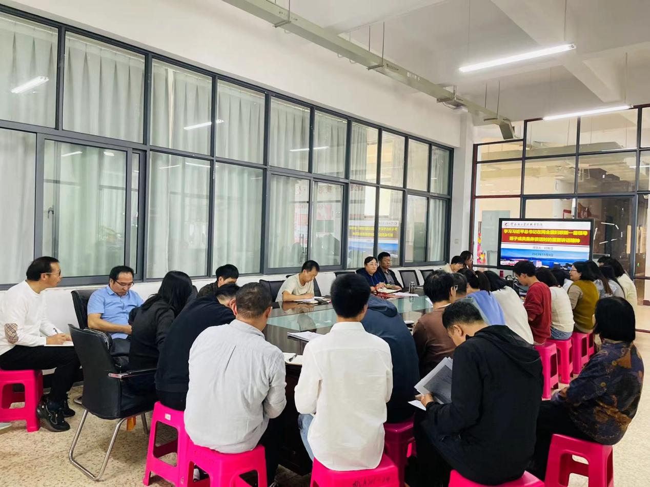 11月8日中午13:00,澳门网投十大信誉平台在明尚楼A201开展了2023年11月份第一次教职工政治理论学习会。学院教师何雨洁、谢亚男、李月婷带领全体教职工先后学习了习近平总书记在同全国妇联新一届领导班子成员集体谈话时的重要讲话精神、习近平总书记在同中华全国总工会新一届领导班子成员集体谈话时的重要讲话精神、习近平总书记对宣传思想文化工作作出的重要指示精神。