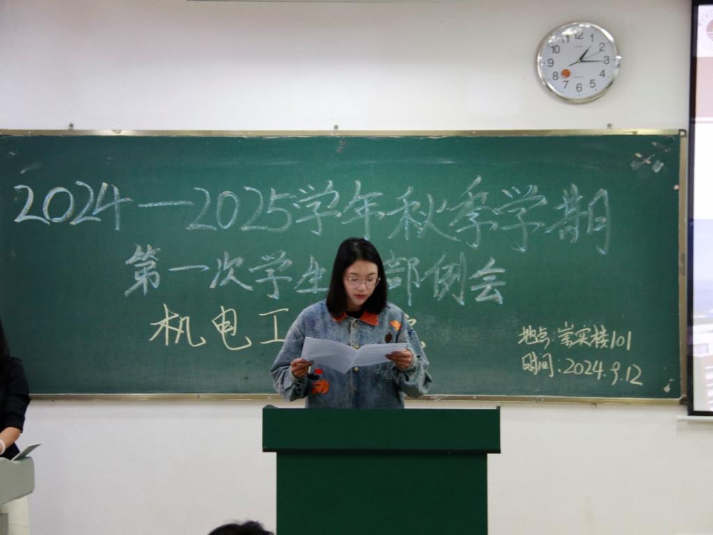 会议伊始,学生会主席汪达和团总支副书记罗杰分别对上一学期学院工作进行了总结汇报,并对本学期工作作出规划。各部门负责人依次汇报近期工作的推进情况及未来的工作计划。在此期间,大家踊跃分享工作经验,探讨工作中遇到的难题及其解决方案。全体成员在杨珍妹老师的带领下,开展了以学习党的二十届三中全会精神及《习近平与大学生朋友们》为主题的政治理论学习。马玲老师详细部署了本学期的团学工作和学生活动,要求各部门既要兢兢业业完成本职工作,又要与其他部门紧密协作,提升活动质量与实效。她还强调,学生干部应当清楚认识自身的岗位职责,准确自我定位,不断增强服务意识,从而起到良好的示范作用。