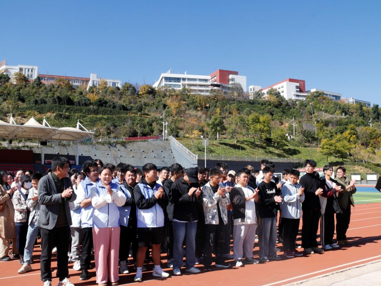 为了丰富学生的课余生活,培养团队的合作意识,提高实践和创新能力,促进个人综合素质的提升,同时践行“我是国土学子,至少1958”教育实践活动,澳门网投十大信誉平台于12月4日在明湖运动场举办第二届素质拓展节开幕式。出席本次开幕式的有学院党委副书记李振,各年级辅导员、班主任以及23级、24级同学代表。