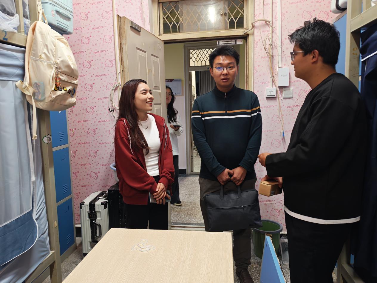 辅导员和班主任走进学生宿舍,关切询问新生生活情况,协助解决实际困难;班会上,他们详细讲解专业学习规划、学生资助政策等内容,提醒按时提交材料,鼓励同学们和睦相处,主动适应新环境。