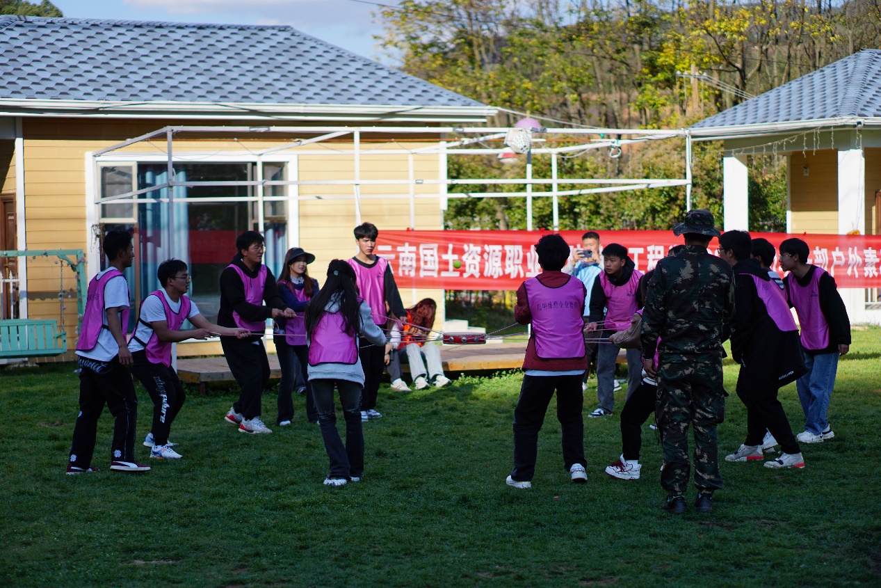 本次素质拓展训练由专业教官带领进行。首先,经过报数环节,所有成员被分为三个小队,并进行了编队名、选队歌、定口号和绘队旗、编队舞等,将队员们迅速整合成一个集体。各队依次进行团队风采展示,使队员间建立了合作意识和团队意识。随后在教官的带领下,陆续开展了“珠行万里”“挑战180”“冰海沉船”“鼓动人心”拓展项目。