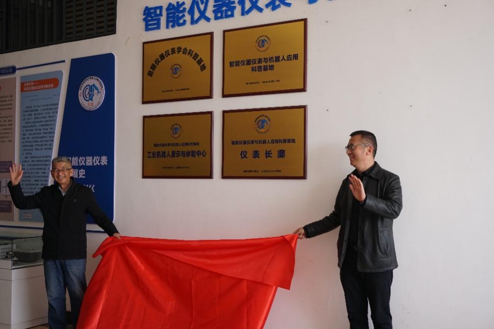 寸建平、方原柏共同为“智能仪器仪表与机器人应用科普基地”揭牌,并进行捐赠仪式