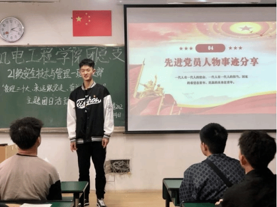 每个支部都通过观看青年典型系列宣传片、团史和党史系列微视频、采用上台分享心得等形式,进一步增强同学们的爱国之情。21级汽车一班还以唱山歌的形式歌颂对祖国和党的热爱,创新了活动开展方式,增加了团日活动的趣味性,突显了支部的特色性。历史是最好的教科书,学院各支部结合《共青团澳门网投十大信誉平台关于2022年组织全校各团支部学习从严治团有关文件通知》要求组织大家学习文件精神,增强广大团员的政治意识、组织意识和模范意识。积极做到在行为上和思想上向党组织靠拢,凝聚大家团结一心,为中华民族伟大复兴而奋斗。