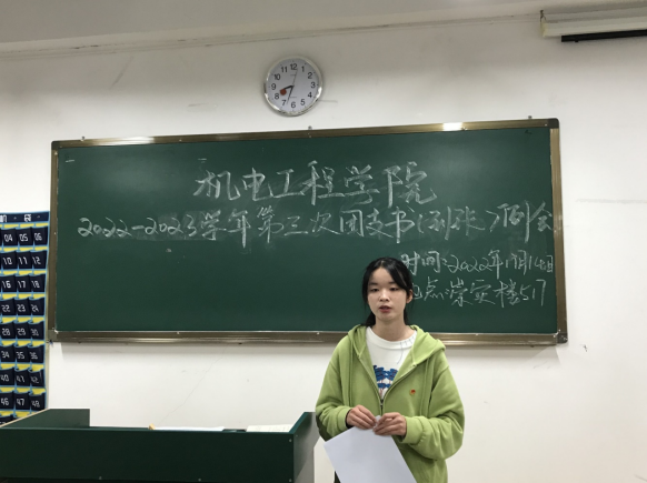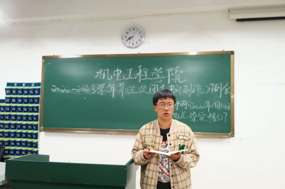 最后,团总支副书记李玉花对本次团日活动部署会进行总结发言,她要求各班团支书要及时做好本次团日活动的策划和总结,既要分工明确,又要团结班委和同学,不断创新活动形式,扩大团日活动影响力。她希望团支书个人要积极发挥榜样示范作用,要积极上进、勤奋刻苦,勤学习、多思考、多提问,不断夯实专业基础;要自信自强、踔厉奋发,积极学习马克思主义最新理论成果和二十大报告,深入领会、全面贯彻报告精神实质,主动担当时代重任。