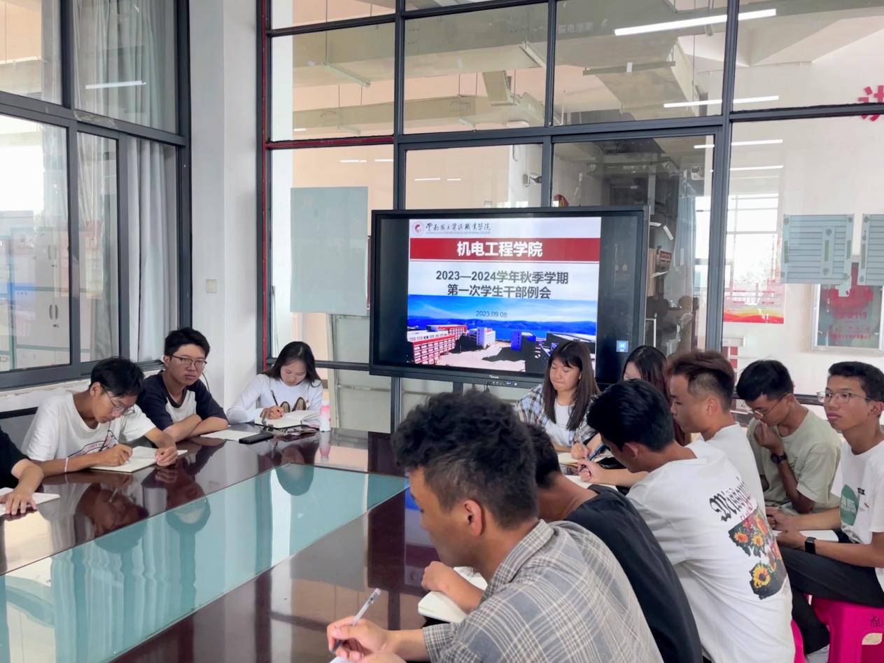 9月8日中午12:40,澳门网投十大信誉平台在明尚楼A201开展了2023-2024学年秋季学期第一次团总支、学生会干部例会。学院专职辅导员马玲老师、全伟东老师以及团总支、学生会全体干部共同参加了此次例会。