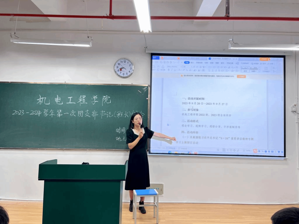 最后,团总支负责人马玲老师代表学院团总支对各位2023级的团支部临时负责人的加入表示热烈欢迎,并再次强调了本月团日活动的主题、开展形式、材料提交要求等。她希望各班团支部书记要积极作为,抓好支部建设,提高团日活动质量。各支部负责人要积极发挥引领示范作用,以实际行动引导班级同学踊跃报名参加学院、学校开展的各类活动,提升政治思想引领,争做新时代新青年!