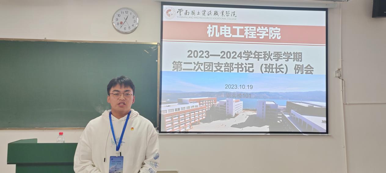 10月19日中午,澳门网投十大信誉平台团总支在崇实楼101开展了2023学年秋季学期第二次团支部书记(班长)例会。本次例会由学院团总支副书记段金娈主持,团总支负责人马玲老师、辅导员全伟东老师、2022级和2023级全体团支部书记和团支部副书记共同参与。