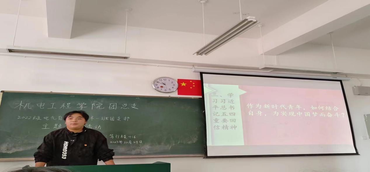 10月24日上午10:30,澳门网投十大信誉平台2022级电气自动化技术1班在笃行楼416召开了“我向大家讲思政”主题团日活动。本次活动由2022级电气自动化技术1班团支部副团书记张银兵主持,全班同学共同参加。