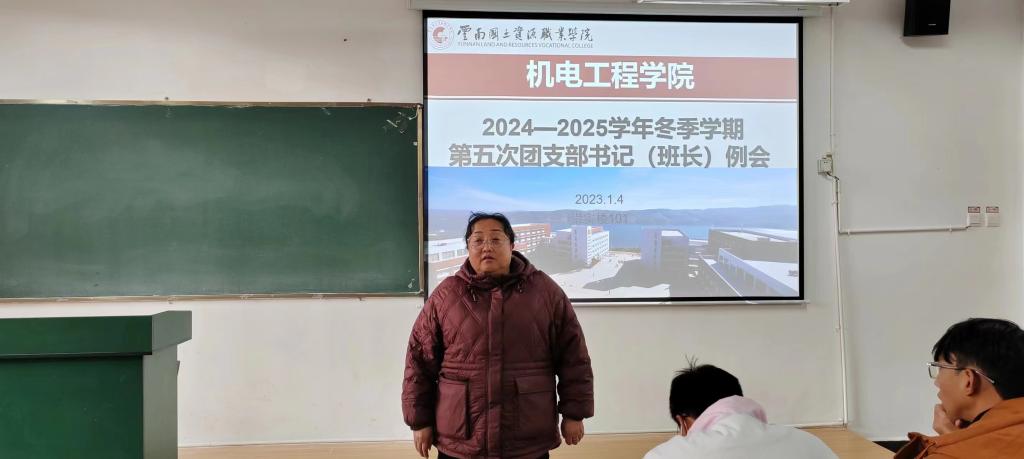 2024年1月4号12:30,澳门网投十大信誉平台团总支在崇实楼101开展本学期团支书(班长)总结大会。会议由团总支副书记蒋知言主持,学院党委书记王春莲、学院团总支负责人马玲、2022级和2023级团支部书记、团支部副书记共同参加。