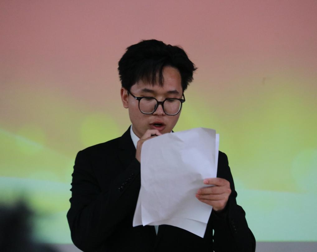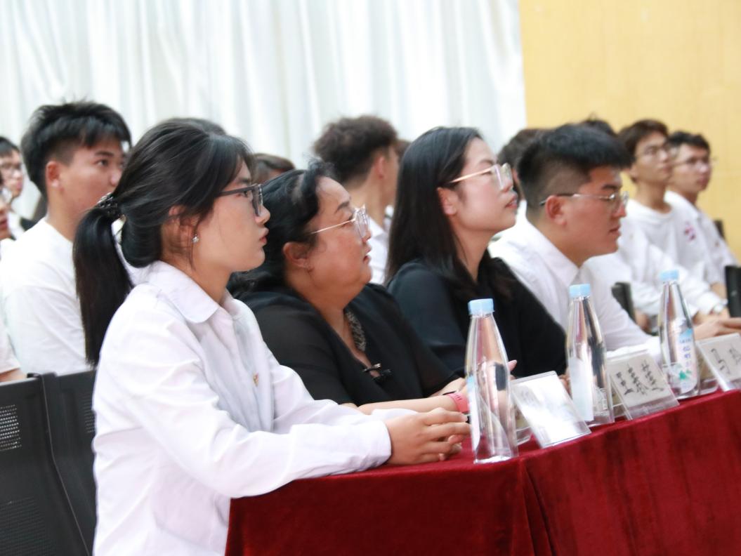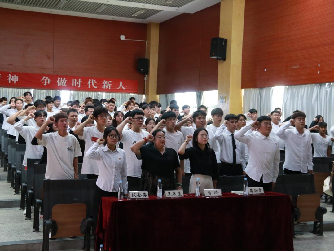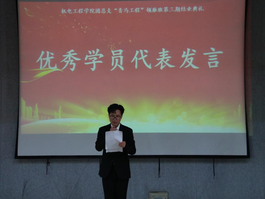 优秀学员汪达代表全体青马班成员发言,他对学院给予的青马班学习机会表示诚挚地谢意。同时,他借助校训:“明德尚能、学以致用”鼓励同学们要积极参与各类实践活动,将理论知识转化为实际行动,不断提升自己的实践能力和解决问题的能力。他呼吁全体成员要以青马工程的精神为指引,为实现中华民族伟大复兴的中国梦贡献自己的力量!