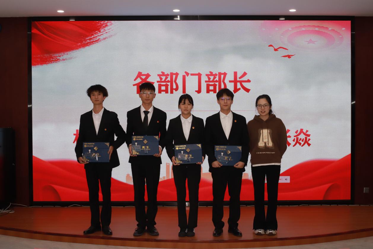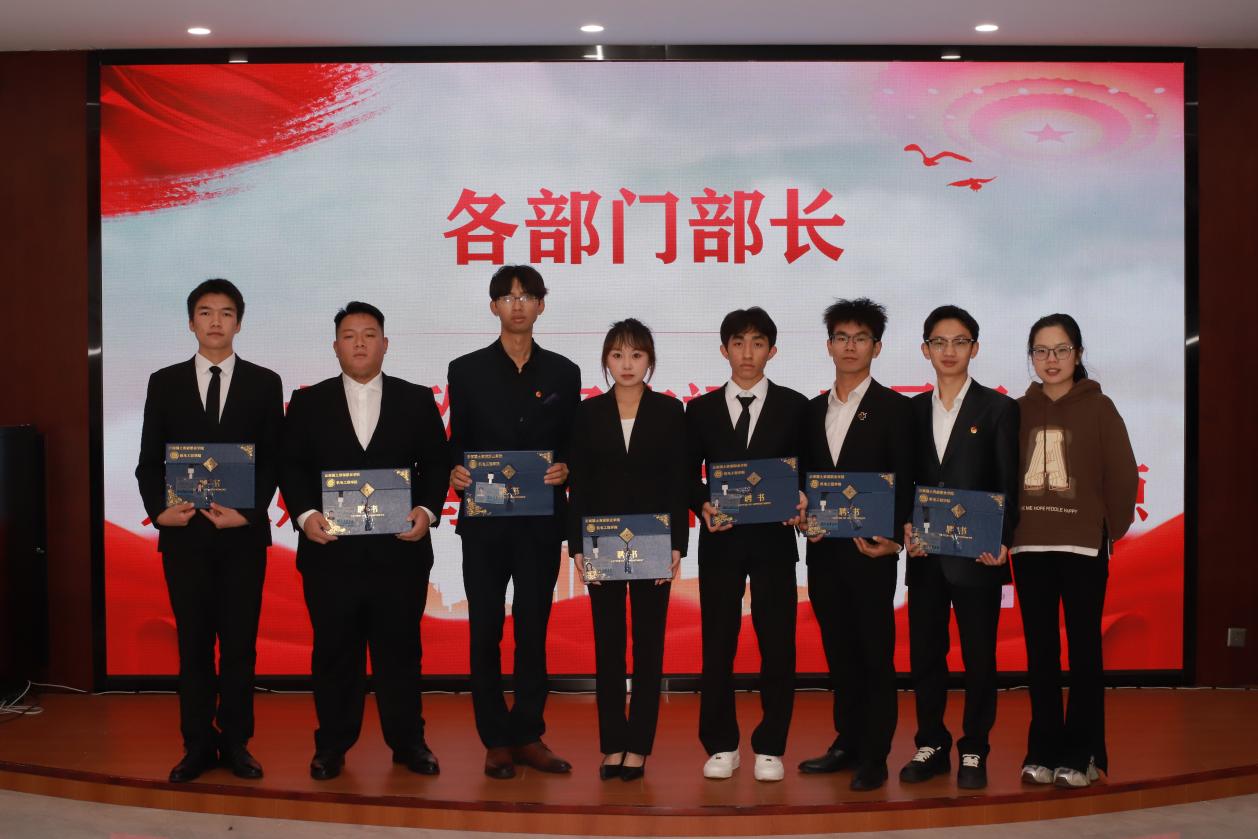 第二项议程:颁发聘书。张颖书记为团支部副书记和学生会主席团颁发聘书,马玲老师为各部门部长颁发聘书,团总支副书记、主席团成员为副部长颁发聘书,部长为各部门干事颁发聘书,各部门依次完成颁发。通过仪式感激励干部们不忘初心,脚踏实地开启新征程。