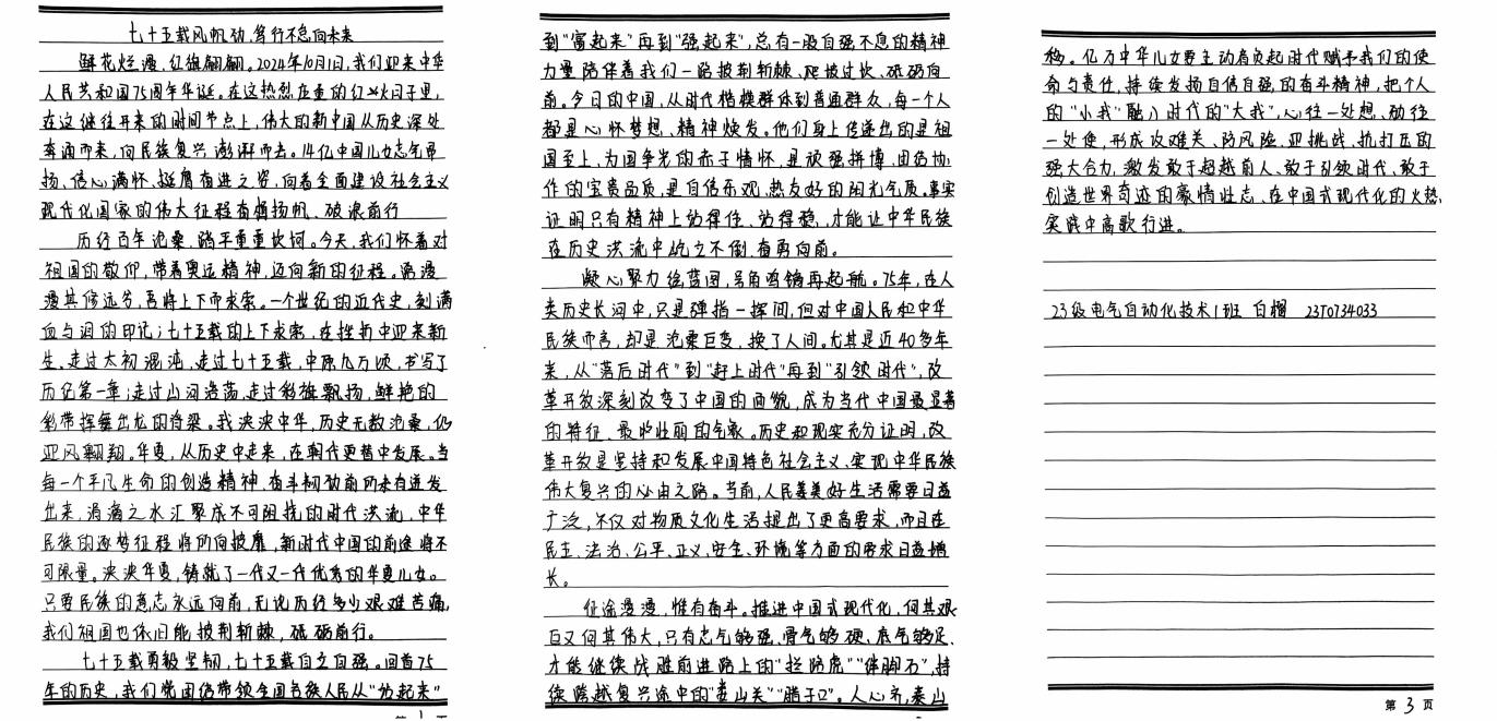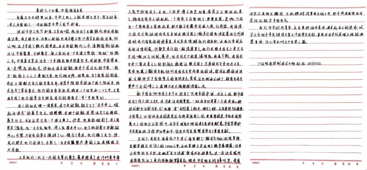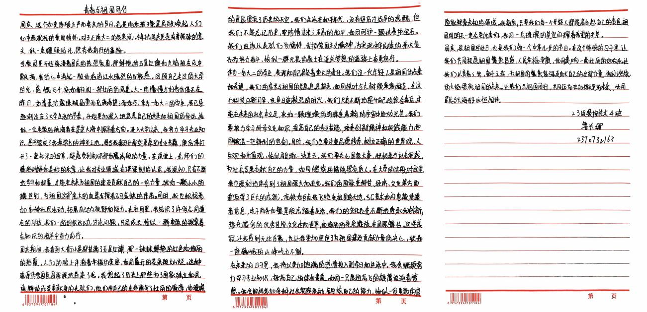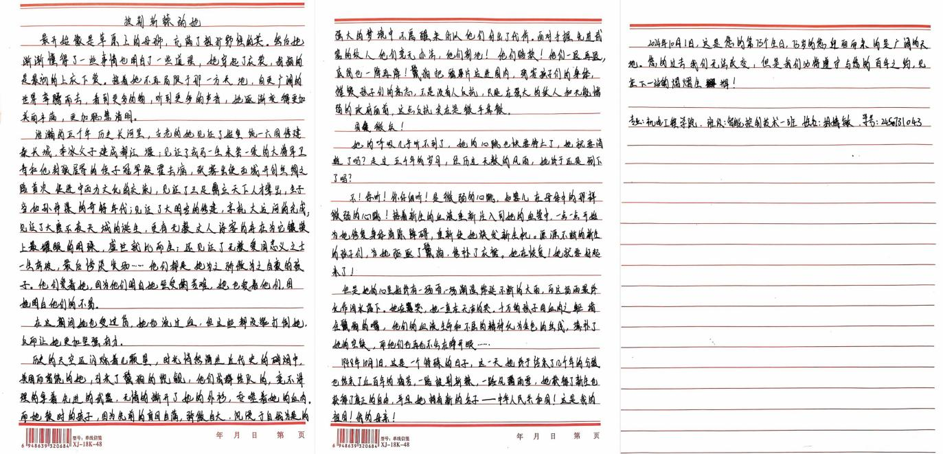 我院学子积极参与,用真挚语言,庆祝祖国母亲生日,展望中华民族伟大复兴的美好未来。本次征文比赛佳作频出,以下为部分优秀参赛作品: