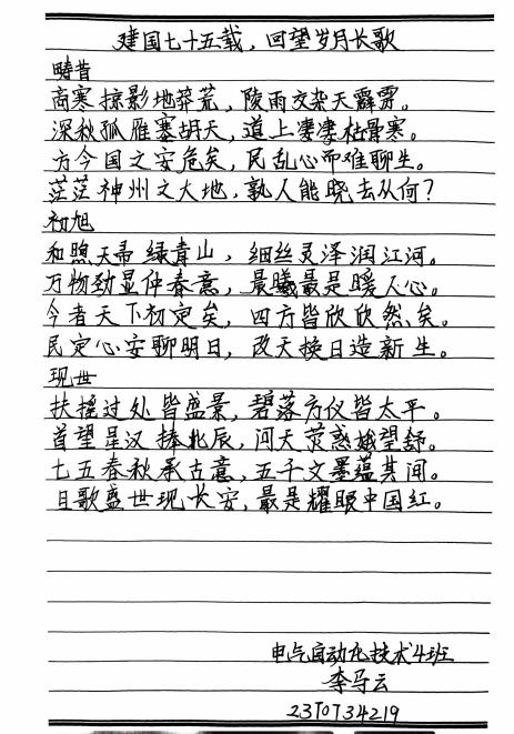 2024年10月,金风送爽,值此中华人民共和国成立七十五周年之际,澳门网投十大信誉平台开展“喜迎七十五载 ,共筑强国未来”征文比赛,本次活动由学院学生会宣传策划部承办。